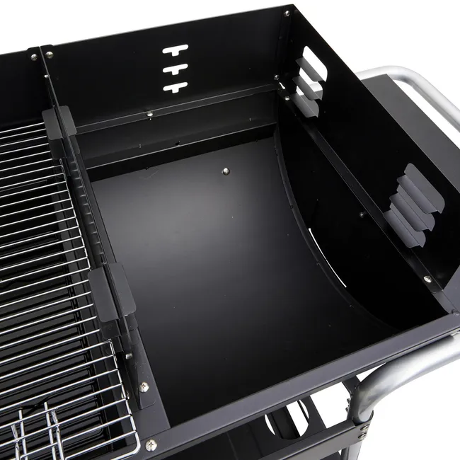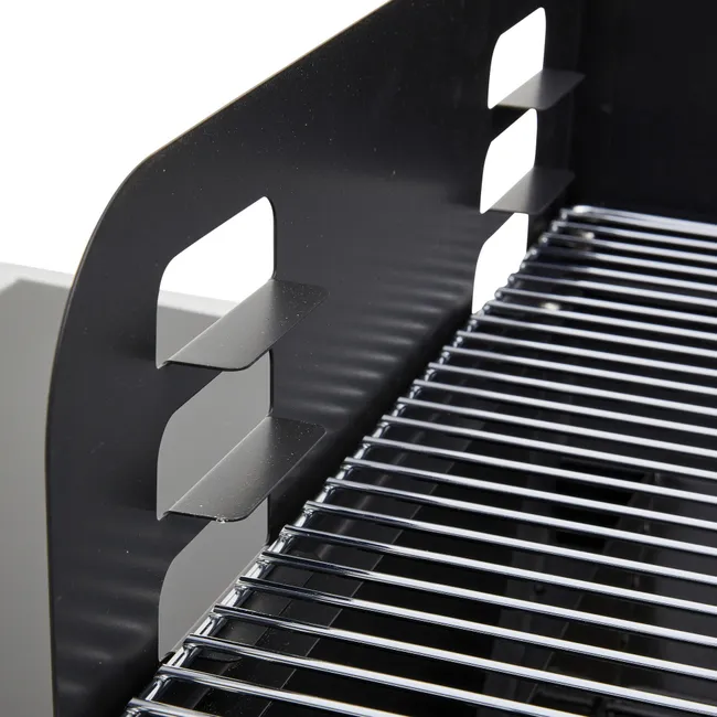 Procurando um churrasco de carvão perfeito para o seu terraço? O churrasco de carvão de Darius é o seu aliado! Refeições quentes adaptadas a todos os tipos de espaço É adequado para pequenos terraços e jardins espaçosos. Quando os dias ensolarados chegarem, compartilhe uma refeição de férias para 6, em torno de receitas que estão fora do comum. Reviva seus convidados, com espetos de abobrinha com pesto de manjericão ou um Camembert assado. Para garantir a grelha à temperatura ideal, sua área de cozimento está equipada com uma grade para ajustar a altura do cozimento. Vantagens técnicas O comprimido lateral e os ganchos permitem que você coloque as placas e tenha os utensílios à mão. Um comprimido inferior é dedicado a colocar sua bolsa de carvão. Dicas de manutenção: Darius pode ser facilmente limpo com um pano úmido e sabão neutro. Graças à sua lareira de ferro fundido, oferece durabilidade real no churrasco. É aconselhável o inverno seu churrasco sob uma cobertura (não inclusive) para não ser afetada por condições climáticas externas.