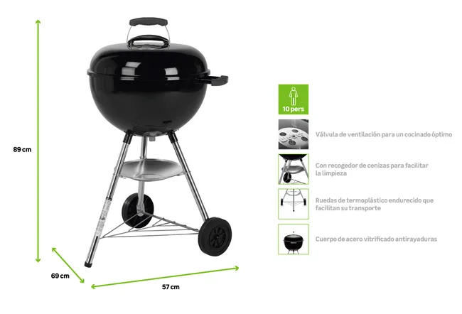 O prazer de um grelhado tradicional com as vantagens da culinária a carvão disponível para todos. A grelha de 57 cm de diâmetro permite cozinhar mais facilmente.