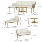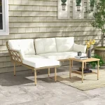 Conjunto de Jardim de 3 Peças Outsunny Aço, vime PE, poliéster Natural e Creme 130x70x80 cm