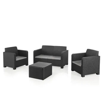Conjunto de jardim relax resina mesa com arrumação e sofás cinzento 4 lugares Novo Naterial