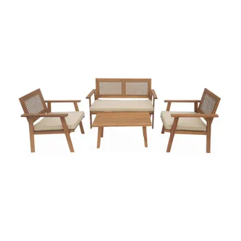 Conjunto de mobiliário de jardim com sofá em madeira, 4 lugares, Bohemia, 117x64x74 cm
