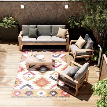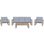 Desfrute de um lanche gourmet ao sol com o conjunto Solaris. No seu deck ou varanda, combina conforto e estilo graças à sua construção em madeira de acácia amiga do ambiente. Um conjunto confortável e durável O conjunto de jardim Solaris é composto por um sofá para 3 pessoas, duas poltronas individuais e uma mesa de centro. As almofadas são confeccionadas em poliéster e tratadas com anti-UV e hidrorrepelente, o que retarda o desbotamento e permite limpar imediatamente manchas acidentais. A mesa de centro do conjunto Solaris oferece-lhe um suporte ideal nos seus momentos de relaxamento ao ar livre. As poltronas oferecem assentos confortáveis, respeitando o seu espaço. Também confeccionados em madeira de acácia, são resistentes às variações climáticas como chuva, vento ou frio. Leves, são fáceis de mover. A madeira selecionada para esta série provém de florestas certificadas pela sua gestão responsável e sustentável. Um estilo naturalmente moderno Tal como a série Solaris, tem um estilo natural reforçado pelo seu design em acácia. Geometricamente, os braços e as pernas do sofá se encontram em formato de “U” aberto e arejado. A mistura de madeira clara e almofadas cinza reforça o estilo natural e suave do conjunto. O design das poltronas individuais é semelhante ao do sofá para garantir a harmonia natural do conjunto. Combine o seu conjunto com a mesa alta Solaris. Dicas de manutenção As almofadas são totalmente removíveis para facilitar o cuidado. Recomenda-se também nutrir a madeira uma ou duas vezes por ano com óleo de teca ou linhaça. Para preservar a cor e evitar que fique cinza, pode-se usar um limpador de madeira. Por fim, é recomendado apertar os parafusos do seu conjunto uma vez por ano, devido à natureza viva da madeira. A sua vantagem ambiental A acácia é um material vivo, 100% reciclável. É certificada a partir de florestas cuja gestão é reconhecida como responsável e sustentável em três áreas: social, ambiental e económica. Perante alertas ambientais ligados à desflorestação, uma organização independente controla a rastreabilidade dos produtos através de uma rigorosa política madeireira para garantir a sua origem legal e responsável. Com sede no Vietnã, nosso fornecedor está comprometido desde 2009 no processo de certificação e construiu parcerias sustentáveis com subcontratados e fornecedores locais