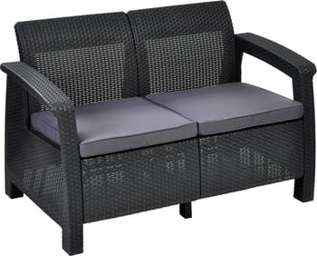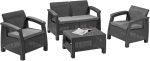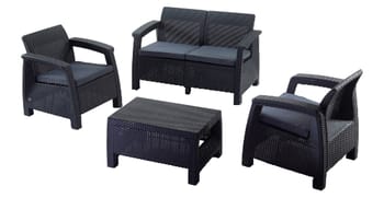 Conjunto jardim relax resina sofá mesa antracite 4 lugares Corfu Keter