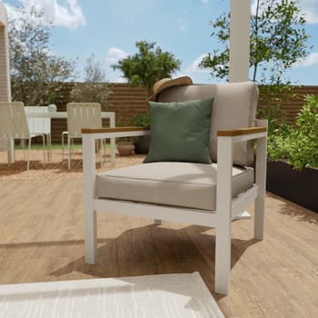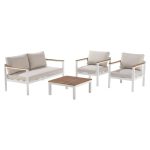 Desfrute de um agradável momento ao ar livre instalado nos móveis de jardim da série Oris. Um mobiliário de jardim completo Composto por um sofá de 2 jogos, 2 poltronas individuais e uma mesa de café, este mobiliário completo do jardim transformará seu jardim em um casulo externo real, para receber os vizinhos para um café. Projetado para conforto ideal, as almofadas presentes no encosto e no assento das poltronas e o sofá garantem que você fique confortável por longas horas. Eles foram submetidos a tratamento anti-UV e repelente de água, para desacelerar sua descoloração e permitir que você apodreça imediatamente tarefas acidentais. Sua mesa central permite que todos os hóspedes coloquem sua bebida lá à mão. Um estilo natural e contemporâneo Com suas formas angulares, os móveis baixos do Jardim Oris têm uma aparência moderna, reforçada pela presença de alumínio. Esse material leve e durável é uma garantia de resistência à umidade e ferrugem. O lado natural trazido por Eucalyptus Wood, do manejo florestal ecológico, suaviza o todo para um resultado elegante. Para aproveitar mais os dias de verão, associe -o ao banhos de sol Oris. Dicas de manutenção Para alimentar a madeira de eucalipto, é recomendável usar o óleo de teca ou linho anualmente. Para evitar inconvenientes na madeira, é aconselhável o inverno sob uma capa respirável, o que permitirá que a madeira tenha acesso ao ar externo necessário. Um nojento também pode ser aplicado a apoios de braços para preservar a cor da madeira. As almofadas são totalmente removíveis e podem ser lavadas na máquina, uma função de “lavagem a frio”. O alumínio é facilmente limpo: um pano úmido e um produto neutro são suficientes para trazê -lo de volta à vida. Durante todo