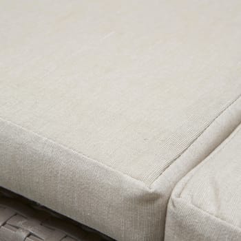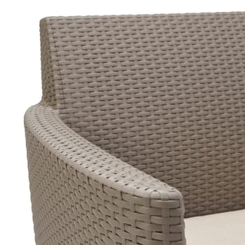 Conjunto de sofás e mesa baixa em resina, para 4 pessoas. O conjunto de 2 lugares, Salermo, transforma jardins, terraços e pátios e paraísos de relaxamento. Inspirado no design escandinavo, este conjunto moderno combina linhas direitas com a bela textura do rattan e cores neutras para garantir que fique bem em qualquer espaço ao ar livre. O sofá de 2 lugares, as duas cadeiras e a mesa são construídos com uma resina duradoura e resistente às intempéries que nunca enferruja, apodrece, descasca ou precisa de manutenção. O conjunto também inclui almofadas extrassuaves.