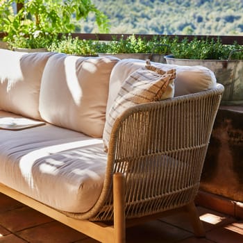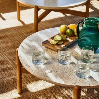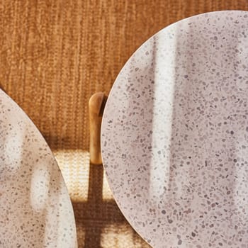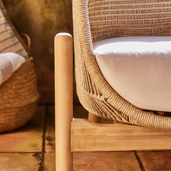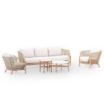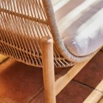 Conjunto de mobiliário de exterior composto por uma mesa redonda baixa de 80cm, uma mesa de apoio redonda alta de 50cm, 2 poltronas e um sofá de 43 lugares feito de madeira de acácia de cor clara com corda de poliéster trançada à mão bege e almofadas de poliéster bege claro imitando a textura do linho. O topo da mesa é terrazzo. A madeira é certificada pelo FSC, garantindo assim a gestão responsável dos recursos florestais do planeta do ponto de vista ambiental, social e económico. Medidas da tabela: 80x37cm Medidas da tabela: 50x47cm Medidas da poltrona: 80,4×86,4×62,5cm Medidas sofá de 3 lugares: 231,6×86,4×62,5cm Todas as almofadas do conjunto de móveis de acácia e corda são removíveis e laváveis. Você pode combiná-lo com os diferentes elementos da família Provenza para completar o seu terraço ou jardim e que não há falta de detalhes.