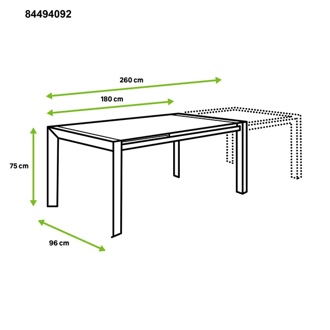 | Tipo de produto | Mesa de jardim extensível |