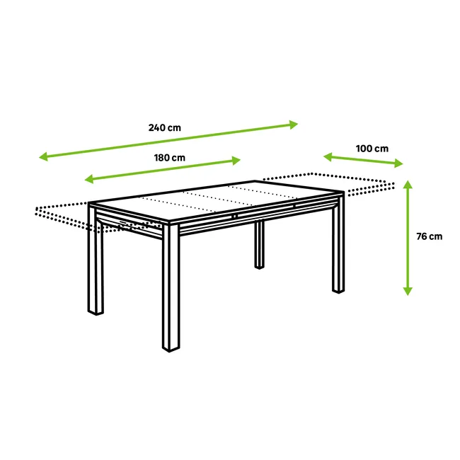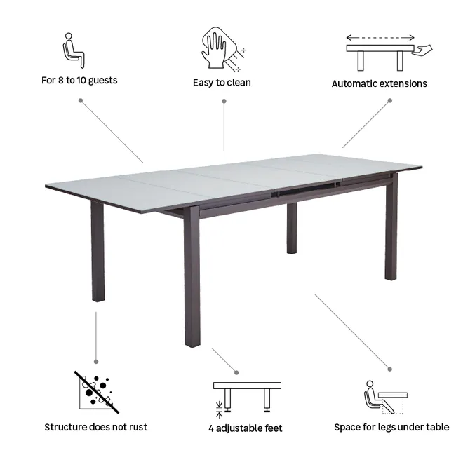 Mesa de alumínio NATERIAL ODYSSEA II EASY VIDRO 180/240X100CM MOKA