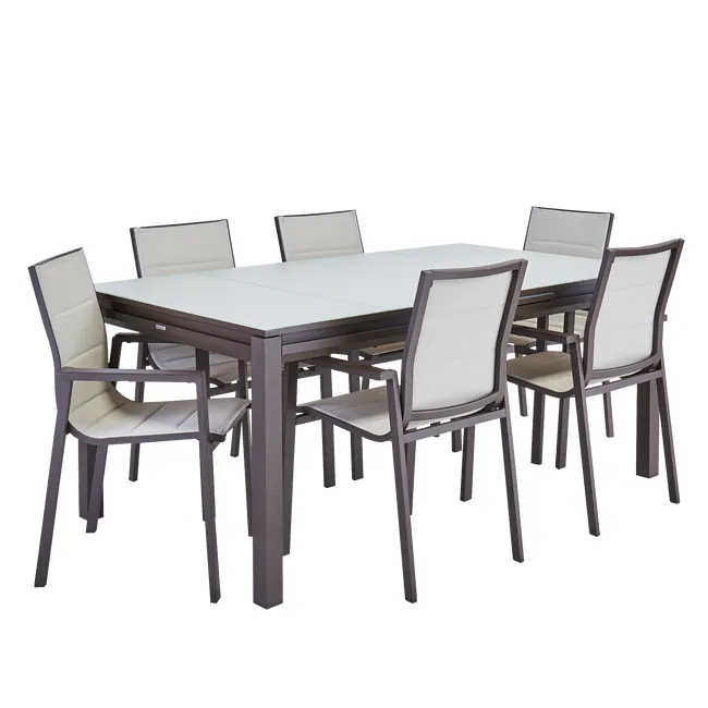 Seja o primeiro a avaliar “Mesa de alumínio NATERIAL ODYSSEA II EASY VIDRO 180/240X100CM MOKA”