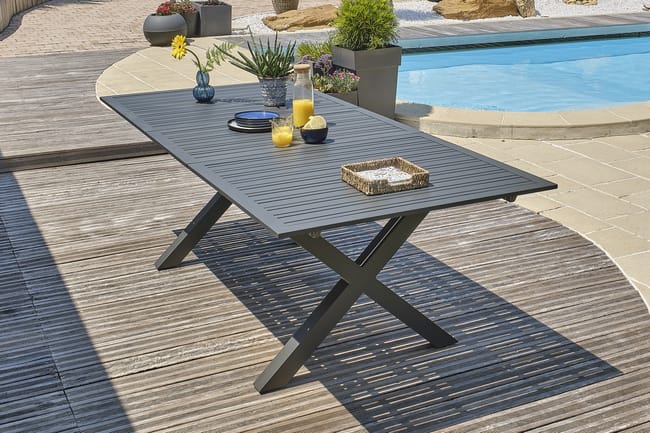 Mesa de jardim em alumínio cinza antracite com extensíƒÂ£o automática. DIMENSíƒâ€¢ES C 180/240 x L 100 x A 77 cm