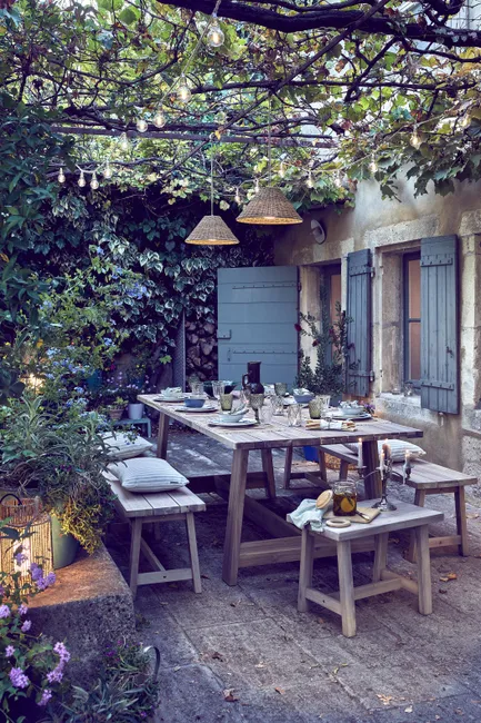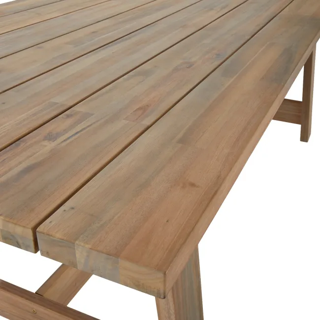Uma mesa natural a adotar para as refeições da sua família no campo Jantares do país em seu jardim Projetado para acomodar confortavelmente 6 pessoas para uma refeição no campo no campo, a Mesa Nateurial da Fazenda II dará um estilo amigável e único ao seu exterior. Feito principalmente de madeira acacia, esta mesa de jardim oferece uma renderização elegante apoiada por sua cor semelhante à teca crua. Sua fabricação de madeira e parafusos de aço inoxidável oferecem resistência natural à umidade, mau tempo e UV, o que garante a sustentabilidade da sua mesa. Um país e um estilo amigável Esta mesa de madeira exótica oferecerá às suas refeições ao ar livre um tom ao ar livre, reforçado pelos pés compactos e inclinados da mesa, bem como por suas grandes ripas de madeira. Adote os bancos longos da mesma faixa para um estilo completo da Country House e 2 fezes Naterial Farm II para acomodar 2 hóspedes adicionais no final da mesa. Uma madeira duradoura fácil de manter Fácil de manter, um pouco de água morna e sabão de Marselha é suficiente para limpar a madeira. Para manter seus móveis permanentemente, é necessário alimentar sua madeira usando teca ou óleo de linho uma ou duas vezes por ano. Um nojento também pode ser aplicado à tabela para preservar sua cor original. No inverno, proteja sua mesa com a cobertura respirável nateurial para preservar sua qualidade. Finalmente, devido à natureza viva da madeira, é recomendável apertar os parafusos da sua mesa anualmente. É mais ambiental Acacia é um material vivo, 100% reciclável. É certificado de florestas cuja gestão é reconhecida como responsável e sustentável nas três áreas: social, ambiental e econômico. Esses produtos são controlados por uma organização independente para garantir sua origem legal e responsável. Com sede no Vietnã, nosso fornecedor está envolvido desde 2009 no processo de certificação e construiu parcerias sustentáveis ​​com subcontratados e fornecedores locais desde 2009. Sustainable Wood Wood Finishsolid Wood Wood