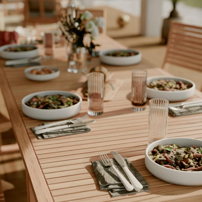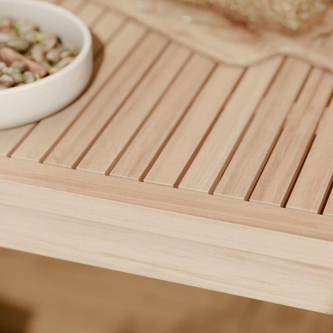 Seu design em madeira de acácia, de uma gestão ecologicamente correta, traz um charme natural aos seus espaços externos.