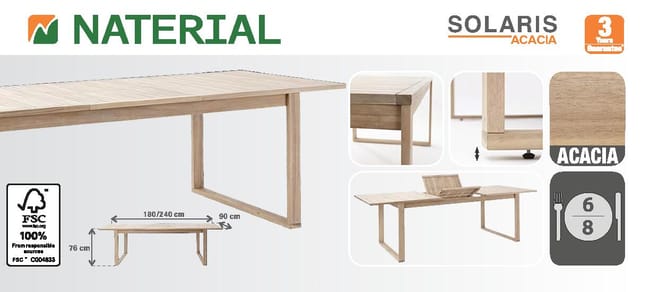 Seja o primeiro a avaliar “Mesa de madeira NATERIAL SOLARIS BUTTERFLY 180/240X90CM”