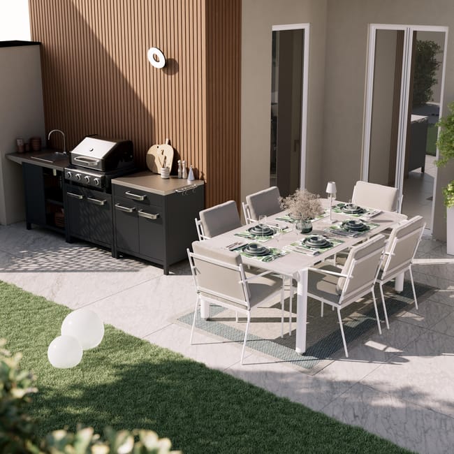 Mesa para jardim retangular 6 pessoas 200×100 cm branco e cinzento Naterial
