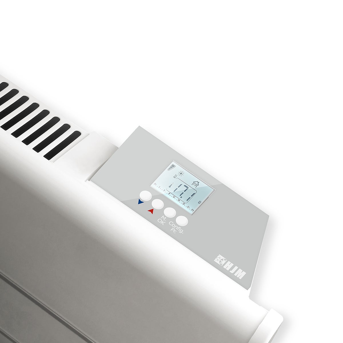 Radiador elétrico conectado com inércia cerâmica. A alta inércia térmica dos blocos cerâmicos continua a emitir calor mesmo após serem desligados. Gera um calor suave e envolvente, garantindo o máximo desempenho para um calor agradável e uniforme por um longo período de tempo. Design extraplano. Fachada de alumínio. CONECTADO: A partir do seu smartphone e através da nossa aplicação gratuita HJM, pode controlar o sistema de aquecimento de uma ou mais divisões de qualquer lugar, a qualquer hora. Pode visualizar e ajustar a temperatura, programar os seus radiadores remotamente e gerir as suas ausências. Só precisa de uma ligação Wi-Fi onde os seus radiadores estão instalados e onde pretende programar ou controlar a instalação através do seu dispositivo móvel. Modo automático/manual, com um programa gratuito. Programação 24 horas por dia, 7 dias por semana. MODOS: PILOT WIRE, COMFORT, NIGHT, ANTI-GEO, BOOST, AUTO, MANUAL, OFF As suas funções permitem-lhe poupar na utilização e garantir conforto e segurança, graças a: • Geolocalização GPS: Detecta ausências/presenças • Compatível com ALEXA, GOOGLE: utiliza comandos de voz • Detetor de janela aberta. • Sistema inteligente de ignição antecipada. • Bloqueio parental. • Limitador térmico de segurança.