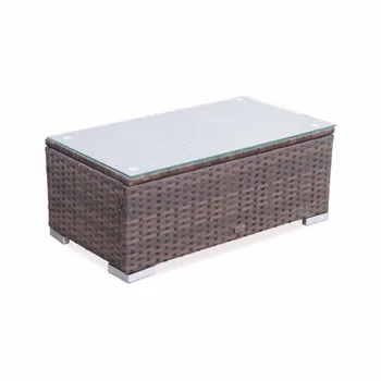 Vantagens do produto Encostos espessos para um conforto óptimo Estrutura em aço ainda mais duradoura Modular, monte a sua sala de estar de acordo com os seus desejos A sala de estar de jardim Torino é uma sala de estar moderna que se adapta tanto ao interior como ao exterior. Este conjunto plano em resina castanha é modular. Pode utilizar o escabelo como apoio para os pés ou como assento adicional. Para maior conforto, as almofadas são grossas e amovíveis. Concebida para utilização no exterior, esta sala de estar é duradoura. A estrutura em aço inoxidável não enferruja. O tampo da mesa de centro é feito de vidro temperado. É 5 vezes mais resistente do que o vidro tradicional. Cuidado: Podem existir diferenças de cor consoante as referências, uma vez que os nossos produtos não são todos fabricados na mesma fábrica ou pintados no mesmo banho. Material: Resina tecida Material das almofadas: Poliéster Material da estrutura: Aço inoxidável Número de lugares: 4 Garantia: 2 anos Utilização: Apenas para uso doméstico Tipo: Mobiliário de jardim Densidade do tecido: 220g/m². 1x Poltrona média: 70 x 60 x 63 cm (7,2kg) 2x Poltronas de canto: 70 x 70 x 63 cm (9,3kg) 1x Apoio de pés: 60 x 60 x 38 cm (5,6kg) 1x Mesa de centro: 80 x 44,5 x 32,5 cm (9,1kg) Altura do assento: com almofadas 38 cm sem 30 cm